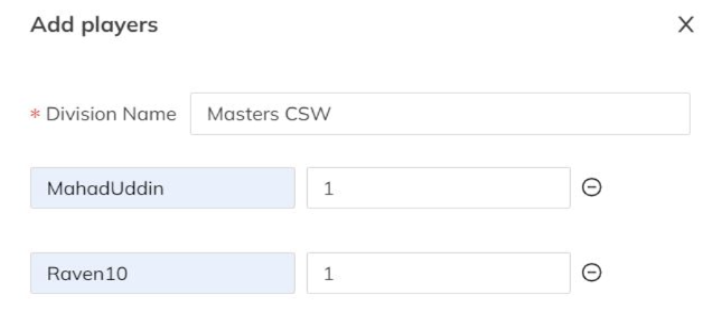 This is the most important step. The players have to be present for the tournaments to begin. If they have not joined, you should not add them. Once they confirm their availability, you should add them for the tournament to begin smoothly and effectively. When you add them, you don’t need to type their Woogles or WESPA Rating. You can simply add “1” along with their Woogles names.