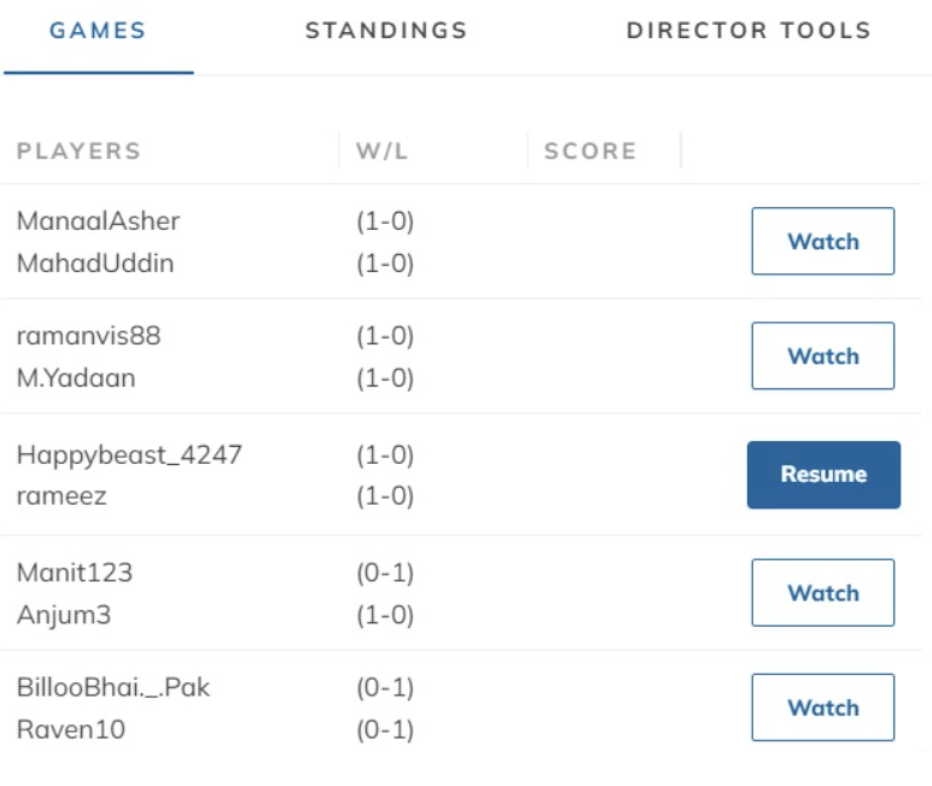 Tournament mode is different from club mode. A player has to obtain a URL link for each tournament every time. The best part of tournament mode is that the pairings and standings are automated & the game spread is also calculated by the system itself, but to make it happen one has to go through the director tools first.